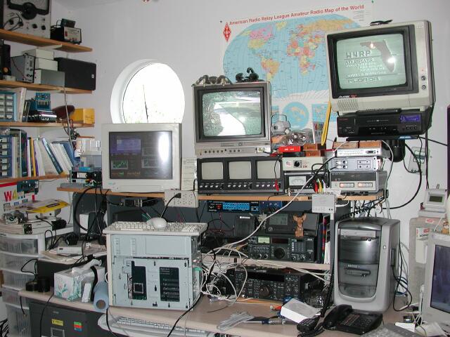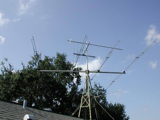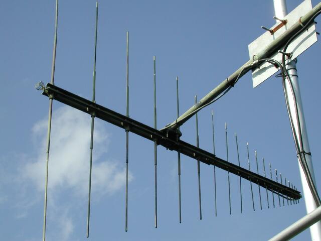 Hard to see this fellow -- but it is my 1.2GHZ (ok 1280MHz) vertical yagi for my ATV Transmitter. It is fixed pointed to the repeater site.